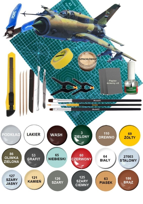 MODEL samolotu do sklejania Mig-21MF 5 wersji malowania Smer skala 1:72 0924 oraz zestaw dodatków do jego wykończenia