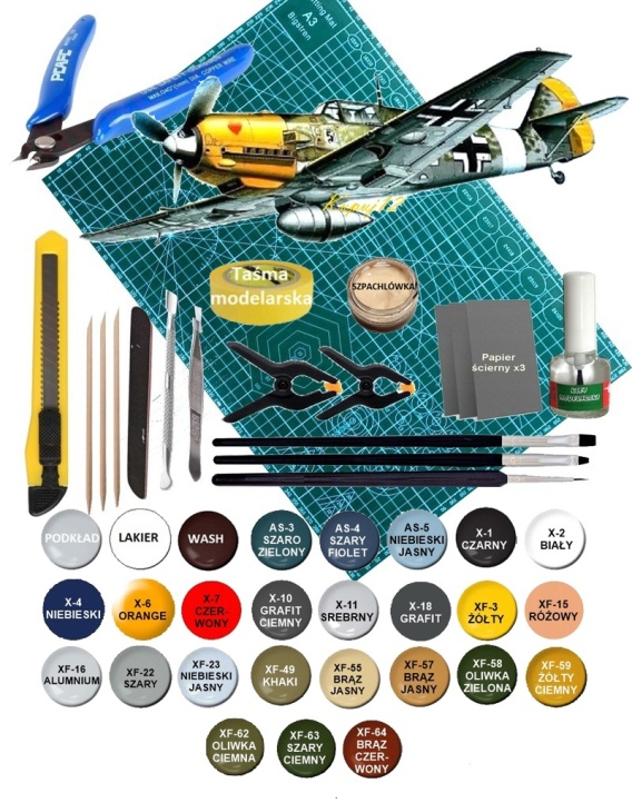 Model samolotu Messerschmitt Bf109E-4/7 Trop. Zestaw podkład, farby, lakier, wash
