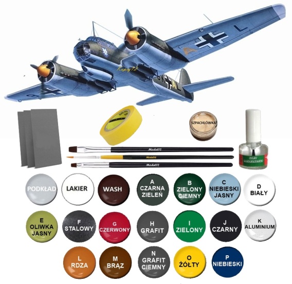 Należy nią pomalować 1- krotnie wszystkie elementy które będą w późniejszym czasie malowane farbami wierzchnimi. Niektóre elementy mogą wymagać malowania jeszcze przed sklejeniem ( np. środek kabiny lub elementy skrzydeł w miejscu mocowania kół).