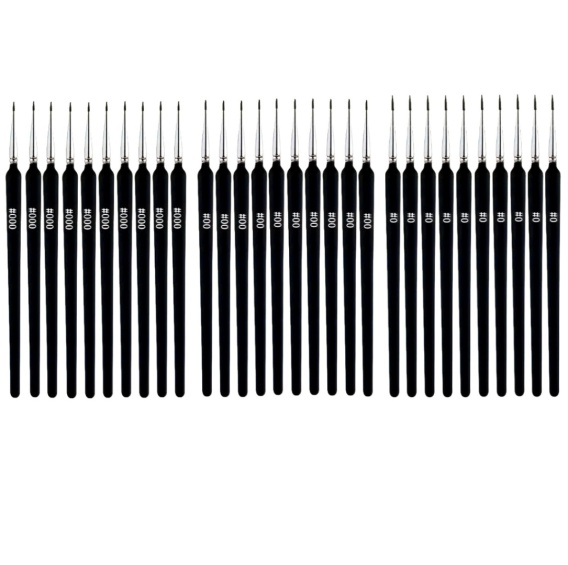 ZESTAW 30 PRECYZYJNYCH PĘDZELKÓW DO MALOWANIA. 3 ROZMIARY 0 00 000