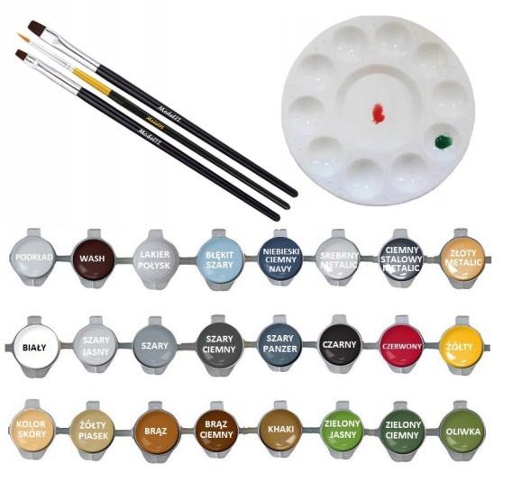 NIE MUSISZ WYDAWAĆ PONAD 200 - 300 ZŁ ABY SPRAWDZIĆ CZY LUBISZ I CHCESZ SAMODZIELNIE MALOWAĆ PLASTIKOWE MODELE REDUKCYJNE.. NASZ ZESTAW 21 KOLORÓW, NAJCZĘSCIEJ UŻYWANYCH DO MALOWANIA SAMOLOTÓW i CZOŁGÓW + FARBA PODKŁADOWA, LAKIER Z POŁYSKIEM i WASH DO IMITACJI ZABRUDZEŃ, POZWOLI CI OCENIĆ SWOJE MOŻLIWOŚCI ZA DUŻO MNIEJSZĄ KWOTĘ.