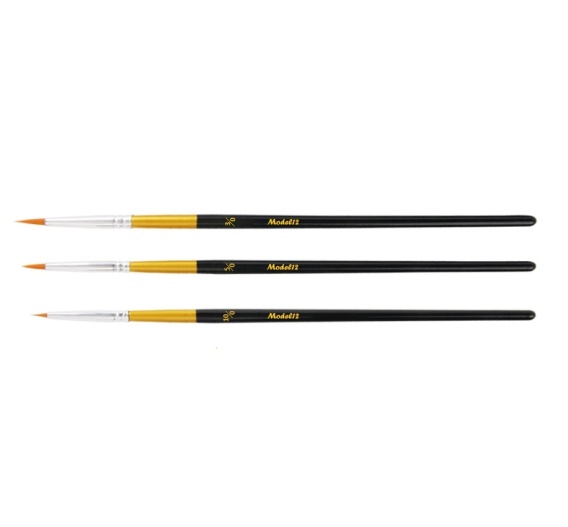 Zestaw 3 x profesjonalny pędzelek modelarski okrągły, syntetyczny włos